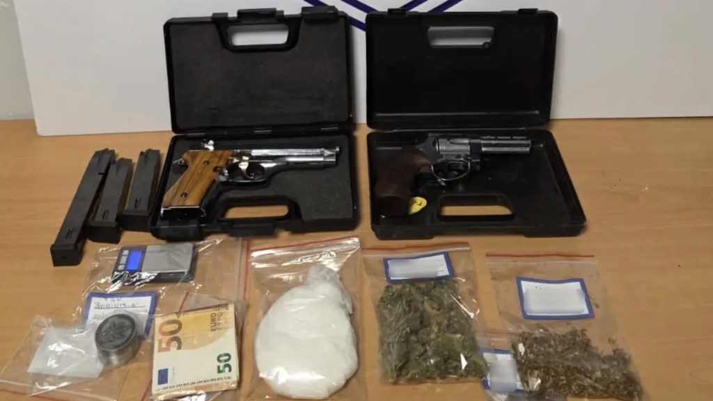 Κατασχέθηκαν σχεδόν -100- γραμμάρια κοκαΐνης, -20- γραμμάρια κάνναβης και ζυγαριά ακριβείας - Επιπλέον κατασχέθηκαν -1- πιστόλι, -1- περίστροφο και -3- γεμιστήρες