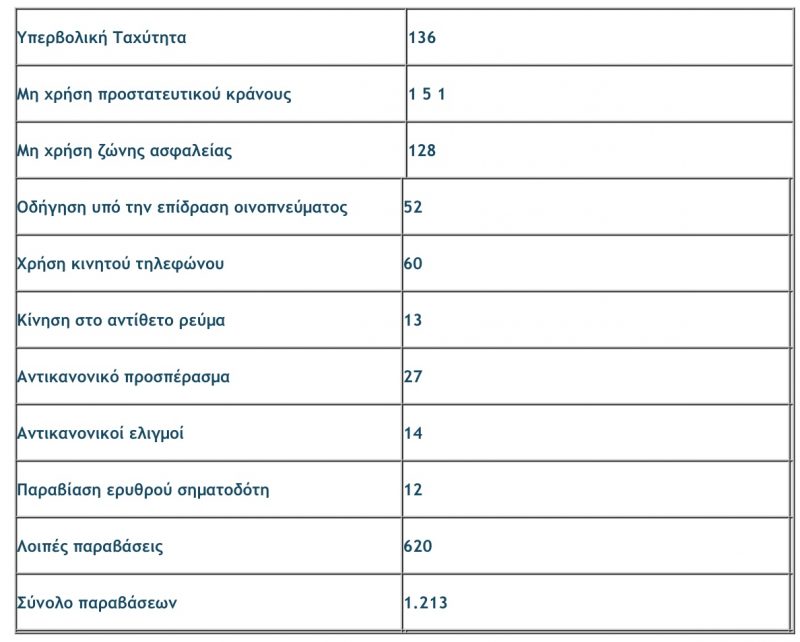 Το τελευταίο τριήμερο διενεργήθηκαν έλεγχοι σε 2.886 οχήματα και βεβαιώθηκαν 1.213 παραβάσεις