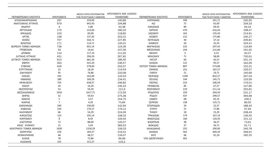 Από αυτά τα 1.697 κρούσματα εντοπίστηκαν: