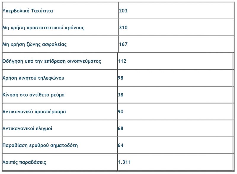 Συγκεκριμένα, συγκροτήθηκαν 149 συνεργεία ελέγχων ενώ πραγματοποιήθηκαν εκτεταμένοι τροχονομικοί έλεγχοι σε οχήματα, σε διάφορες περιοχές της Κρήτης, όπου ελέγχθηκαν συνολικά (6.153) οχήματα, και βεβαιώθηκαν (2.363) παραβάσεις, ως ακολούθως :