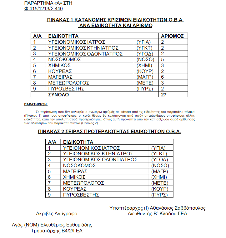ΠΙΝΑΚΑΣ 2 ΣΕΙΡΑΣ ΠΡΟΤΕΡΑΙΟΤΗΤΑΣ ΕΙΔΙΚΟΤΗΤΩΝ Ο.Β.Α.