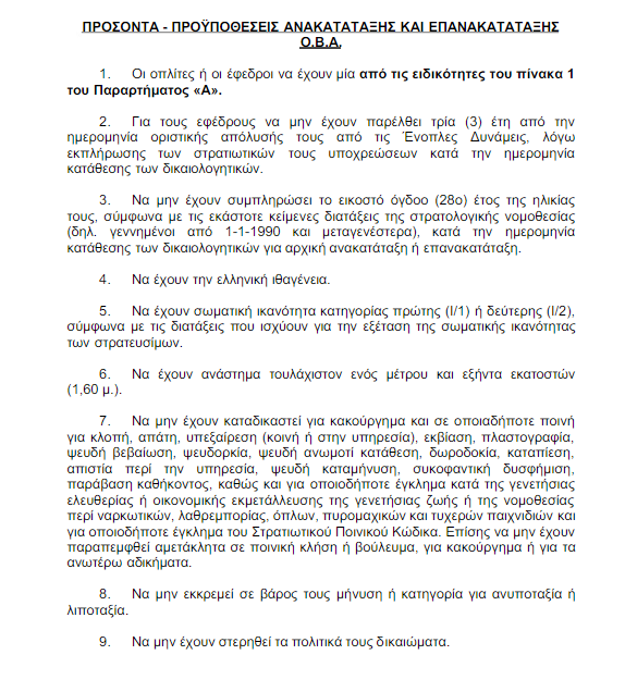 ΠΙΝΑΚΑΣ 1 ΚΑΤΑΝΟΜΗΣ ΚΡΙΣΙΜΩΝ ΕΙΔΙΚΟΤΗΤΩΝ Ο.Β.Α.