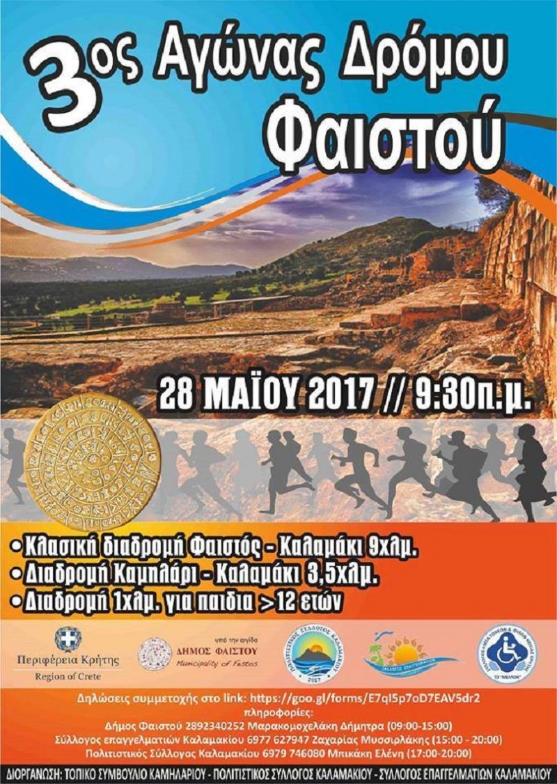 Για τρίτη συνεχόμενη χρονιά πραγματοποιείτε στο Δήμο Φαιστού ο 3ος αγώνα δρόμου Φαιστού πάντα με την στήριξη του συλλόγου ΑμεΑ «Το Μέλλον».