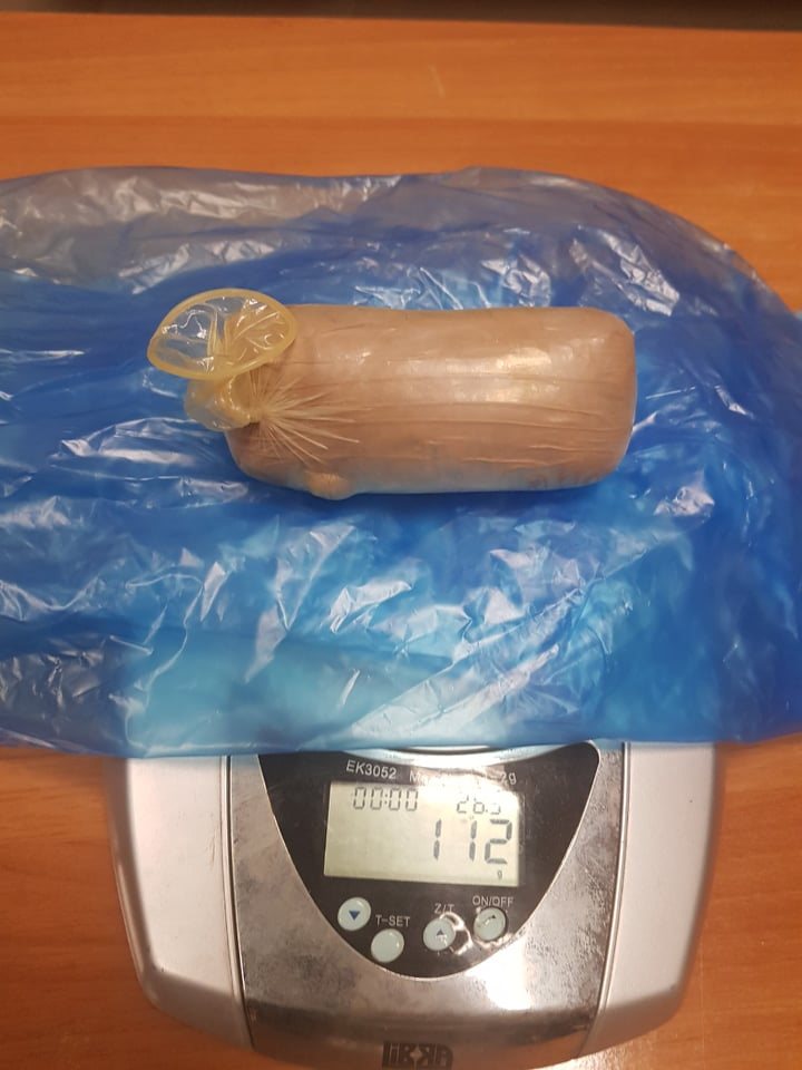 Ακολούθησε έλεγχος από αστυνομικούς της Υποδιεύθυνσης Ασφαλείας Ηρακλείου Τμήμα Δίωξης Ναρκωτικών ,κατά την διάρκεια του οποίου βρέθηκε και κατασχέθηκε μια αυτοσχέδια συσκευασία η οποία περιείχε 112 γραμμάρια ηρωίνης, το χρηματικό ποσό των 70 ευρώ και δύο κινητά τηλέφωνα.