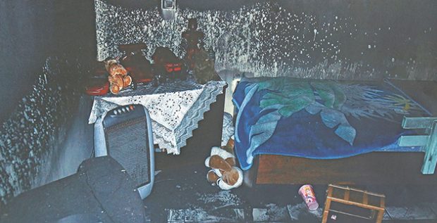 Οι κατεστραμμένες από την πυρκαγιά κρεβατοκάμαρες (Φωτό: Δημήτρης Γκολφομήτσος)
