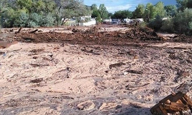 Οι πλημμύρες προκλήθηκαν μετά τις ισχυρές βροχοπτώσεις που σημειώθηκαν χθες στην πόλη Χίλντεϊλ, στα σύνορα με την Αριζόνα, διευκρίνισε το υπουργείο στον λογαριασμό του στο Twitter.