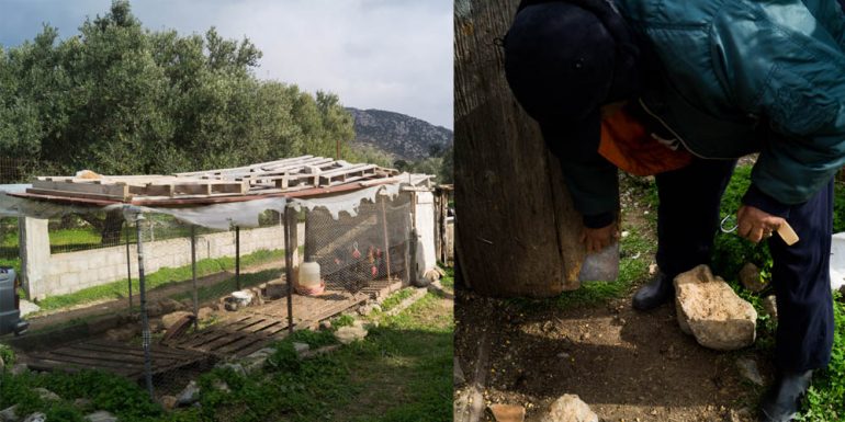 Λίγα μέτρα μακριά απ’ το χωράφι του κ. Κοντοπόδη βρίσκεται το κοτέτσι του κ. Γιάννη Κουφάκη, αξιωματικού εν αποστρατεία, ο οποίος κι αυτός πριν από πέντε μέρες βρήκε τέσσερις κότες πνιγμένες. Όπως μας λέει από το καλοκαίρι έχει κάνει έγγραφη αναφορά στην Αστυνομία χωρίς κανείς να ενδιαφερθεί. Τα σκυλιά έφαγαν κομμάτι από την ξύλινη πόρτα, μπήκαν από κάτω και εκείνος βρήκες τις κότες ψόφιες απ’ έξω. Όπως λέει το περασμένο βράδυ είχε δει την αγέλη να περιφέρεται στα χωράφια της περιοχής και τα κυνηγούσε με το αυτοκίνητο για να τα διώξει.