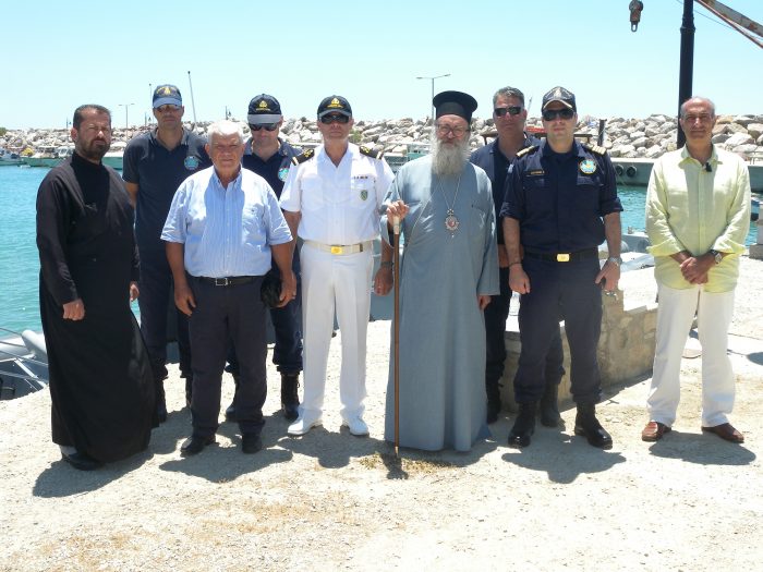 Ο Αγιασμός τελέστηκε από τον Σεβ. Μητροπολίτη Γορτύνης και Αρκαδίας κ. Μακάριο, επί παρουσία των κ. Ευθύμιου Δουβή, Αντιπλοίαρχου του Λ.Σ. – Κεντρικού Λιμενάρχου Ηρακλείου, κ. Νικ. Κομονταχάκη, Σημαιοφόρου Λ.Σ. – Διοικητού του εν λόγω Σταθμού, ανδρών του Λ.Σ. Κόκκινου Πύργου, κ. Νικολάου Μαρκάκη, Εισαγγελέα Εφετών Ανατολικής Κρήτης και άλλων.
