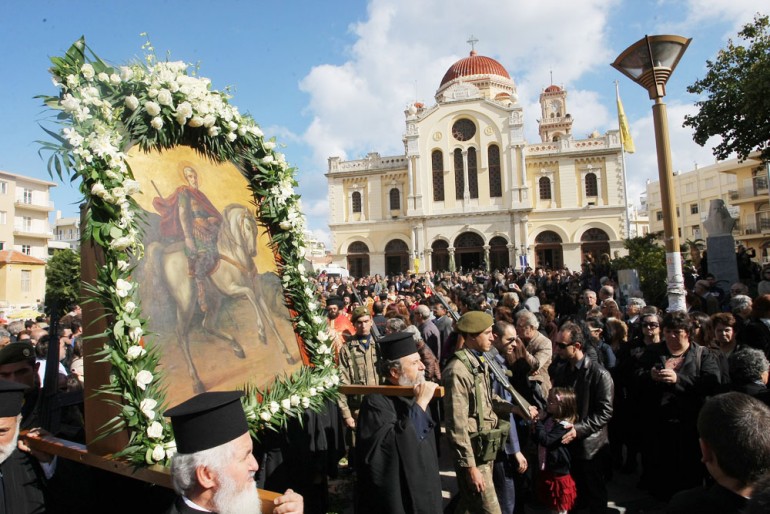Για τη σχέση του Ηρακλείου με τον προστάτη άγιο του έγραψε και ο Καζαντζάκης: