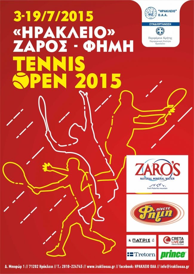 Ο Όμιλος Αντισφαιρίσεως και Αθλοπαιδιών «ΗΡΑΚΛΕΙΟ» προσκαλεί τους φίλους του τένις να παρακολουθήσουν τους αγώνες που θα διεξαχθούν από την Παρασκευή 3 Ιουλίου έως την Κυριακή 19 Ιουλίου 2015.