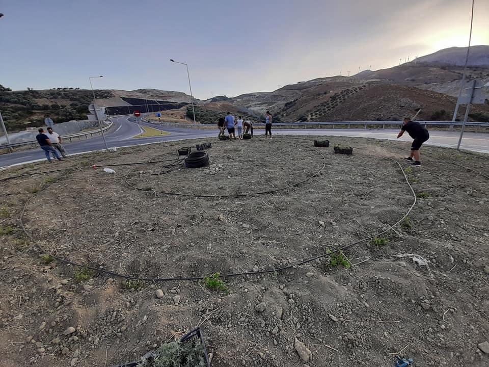 Έτσι λοιπόν ο Δημος Γόρτυνας, Τοπικό Αγίας Βαρβάρας και Πολιτιστικός σύλλογος συνεργάστηκαν για το καλλωπισμό του κυκλικού στην είσοδο της Αγίας Βαρβάρας.