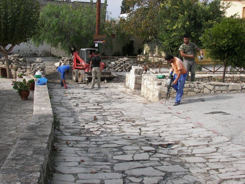 Άρχισαν επιτέλους οι εργασίες ανακατασκευής του πλακόστρωτου στο τμήμα του δημοτικού δρόμου, έξω από τον αύλιο χώρο της εκκλησίας των Αγίων Δέκα.