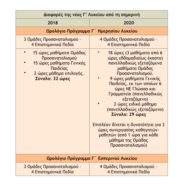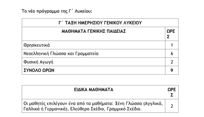 Στην Γ λυκείου, οι αλλαγές είναι οι εξής: