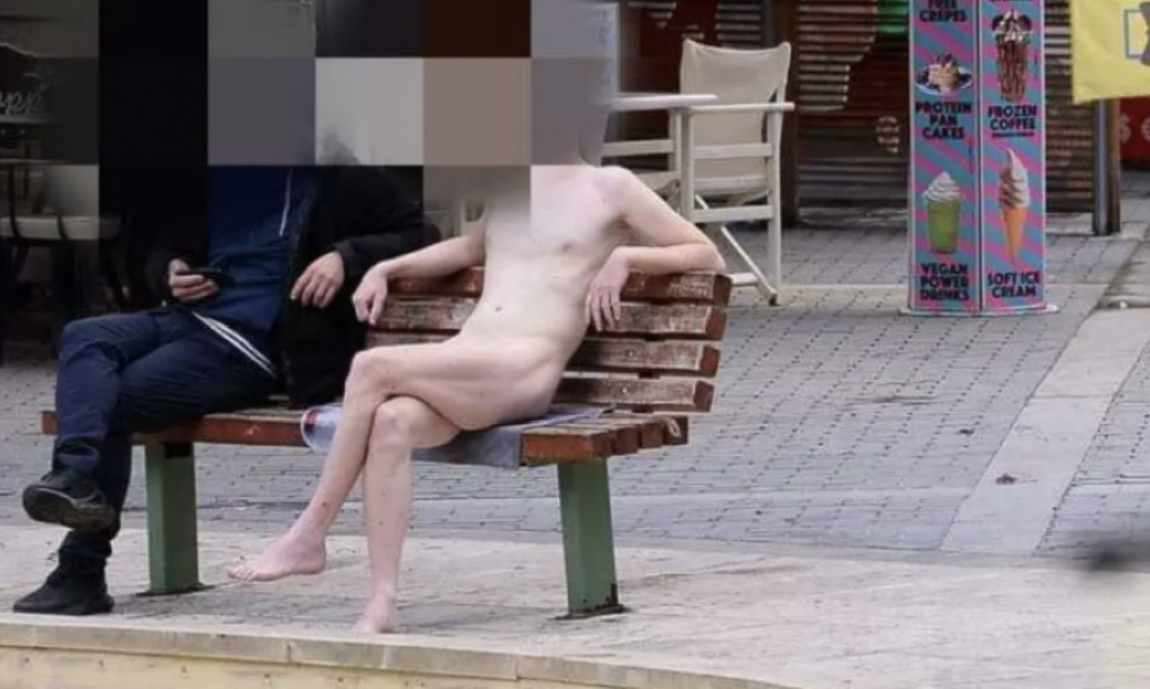 Δίχως να έχει διευκρινιστεί η ταυτότητα του ατόμου που εμφανίστηκε ολόγυμνος να κάθεται σε ένα παγκάκι μπροστά από το συντριβάνι, η εικόνα του δεν πέρασε απαρατήρητη από όσους βρέθηκαν να περνάνε μπροστά από τα Λιοντάρια