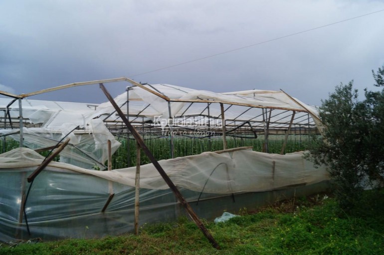 Ο παραγωγός κ. Μακράκης βρισκόταν εκείνη την ώρα μέσα στο θερμοκήπιό του όταν είδε να το ξηλώνει ο αέρας, ευτυχώς χωρίς να κινδυνέψουν ανθρώπινες ζωές.