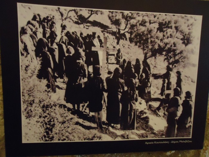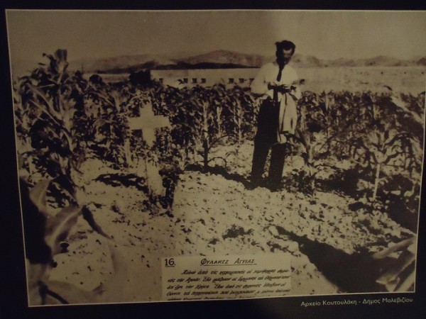 Στη συνέχεια ο Περιφερειάρχης Κρήτης Σταύρος Αρναουτάκης, ο δήμαρχος Ηρακλείου Βασίλης Λαμπρινός, ο δήμαρχος Μαλεβιζίου Κώστας Μαμουλάκης συμβολικά φύτεψαν μια μικρή ελιά έξω από την στοά Μακάσι όπου μαρτύρησαν εκατοντάδες πατριώτες. Στην έκθεση παρουσιάζονται 70 φωτογραφίες από το αρχείο «Κουτουλάκη» που λήφθηκαν από 29 Ιουνίου έως 6 Αυγούστου 1945 σε διάφορες περιοχές της Κρήτης αποτυπώνοντας τα εγκλήματα και τις καταστροφές που διαπράχθηκαν την περίοδο της κατοχής στην Κρήτη από τους γερμανούς και του ιταλούς. Η έκθεση φωτογραφίας του αρχείου «Κουτουλάκη» που βρίσκεται στη διάθεση του δήμου Μαλεβιζίου θα πραγματοποιηθεί έως την Τετάρτη 10 Ιουνίου 2015 με ώρες λειτουργίας καθημερινά 11:00 – 17:00 και ελεύθερη είσοδο.