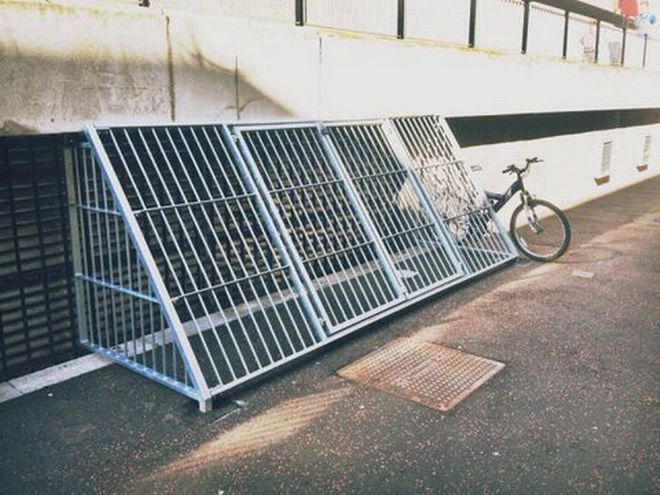 Το τοπικό δημοτικό συμβούλιο της πόλης Angouleme στη Γαλλία, έβαλε τα παγκάκια μέσα σε κλουβιά με σκοπό να αποτρέψει τους άστεγους να τα χρησιμοποιούν.