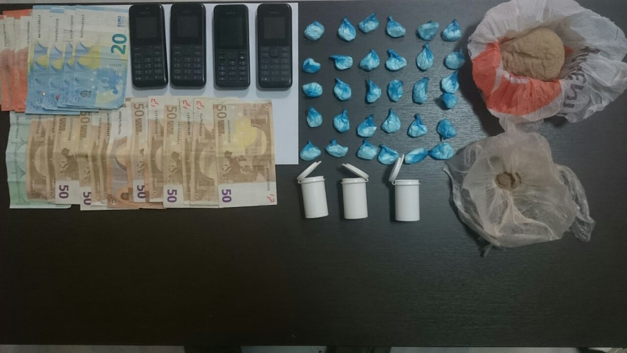 Σε έλεγχο που πραγματοποιήθηκε, βρέθηκαν στην κατοχή του και κατασχέθηκαν το χρηματικό ποσό των 275 ευρώ, ως προερχόμενο από διακίνηση ναρκωτικών ουσιών και δύο κινητά τηλέφωνα.