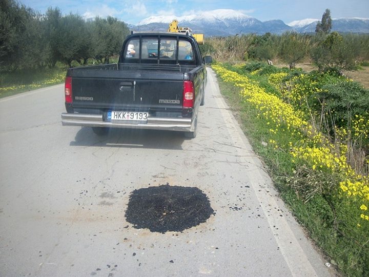 “Αποκατασταση λακουβαs 60 εκατοστα βαθοs, 50 μετρα απο τη γεφειρα του γερο ποταμου, αμεσωs ηλθαν απο το Δημο οταν τουs πηρα τηλ .”
