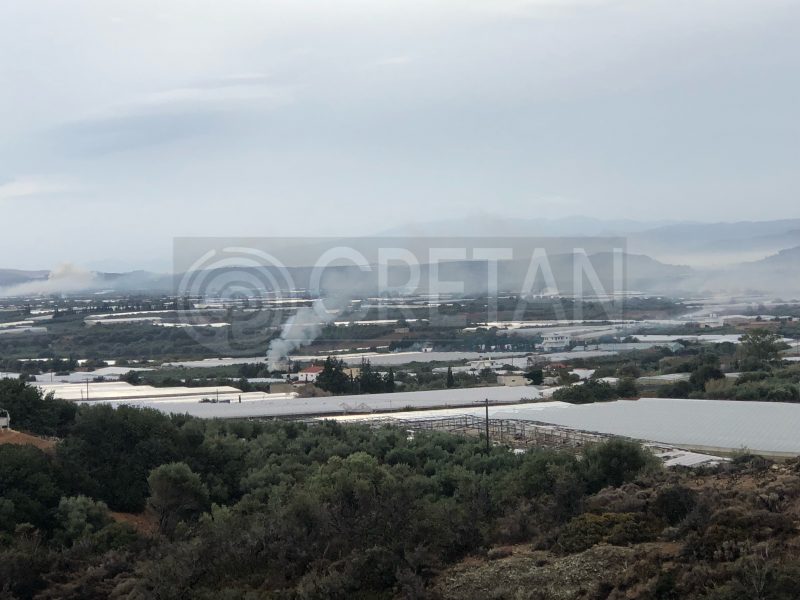 Μέσα στους μεγάλους σορούς με τα μπάζα υπάρχουν και παλιά νάιλον από τα θερμοκήπια που με το κάψιμό τους, κάνουν την ατμόσφαιρα επικίνδυνη.