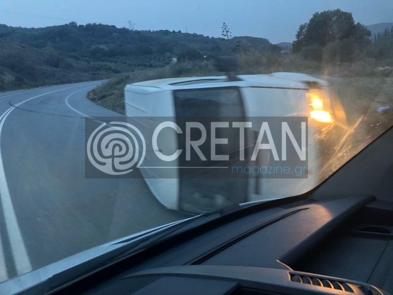 Αυτοκίνητο van μάρκας mercedes ερχόμενο από Μεσαρά προς Ηράκλειο, στο ύψος στη γέφυρα μετά το Σίβα, ο οδηγός έχασε τον έλεγχο και ανετράπει.
