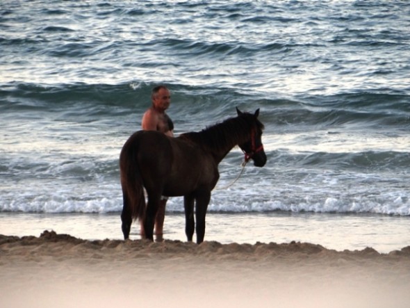 Όλοι οι θαμώνες της παραλίας φωτογράφιζαν και βιντεοσκοπούσαν το ξεχωριστό θέαμα που σε παρέσυρε μαζί του στα βάθη της μαγείας της σχέσης ανθρώπου και ζώου! όπως χαρακτηριστικά μας είπε ο κ. Μπάμπης αυτό ήταν που είχε επικρατήσει και που έκανε την εικόνα τόσο μοναδική, η ΣΧΕΣΗ ΤΟΥ με το άλογο του!