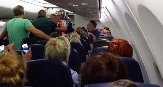 Είναι η στιγμή που ο μεθυσμένος Βρετανός επιβάτης της πτήσης από το Μάντσεστερ για το Ηράκλειο, το βράδυ της Παρασκευής, ακινητοποιείται από το πλήρωμα...