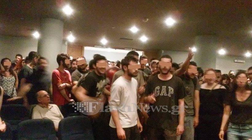 Διαδηλωτές ανάρτησαν πανό και κινήθηκαν κατά των παριστάμενων στο πνευματικό κέντρο της πόλης Ένταση επικράτησε στο χώρο του Πνευματικού Κέντρου Χανίων, όπου ήταν...