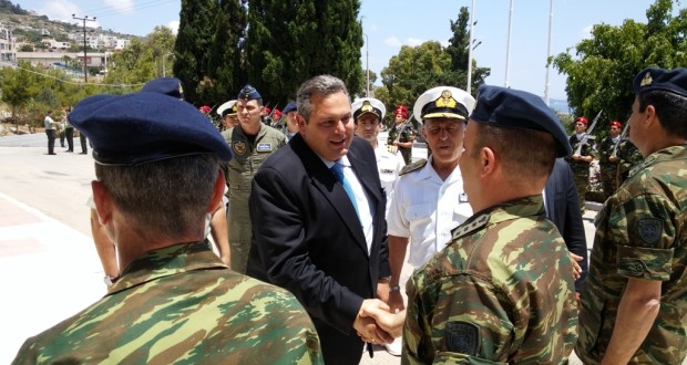 Ο Υπουργός Εθνικής Άμυνας Πάνος Καμμένος συνοδευόμενος από τον Αρχηγό ΓΕΝ Αντιναύαρχο Ευάγγελο Αποστολάκη ΠΝ, τον Αρχηγό ΓΕΑ Αντιπτέραρχο (Ι) Χρήστο Βαίτσηκαι τον Βουλευτή...