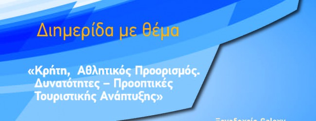Διημερίδα με θέμα: «Κρήτη, Αθλητικός Προορισμός. Δυνατότητες – προοπτικές τουριστικής ανάπτυξης» Η Περιφέρεια Κρήτης , ο Δήμος Ηρακλείου και ο Πανελλήνιος Σύνδεσμος Αθλητικού Τύπου...