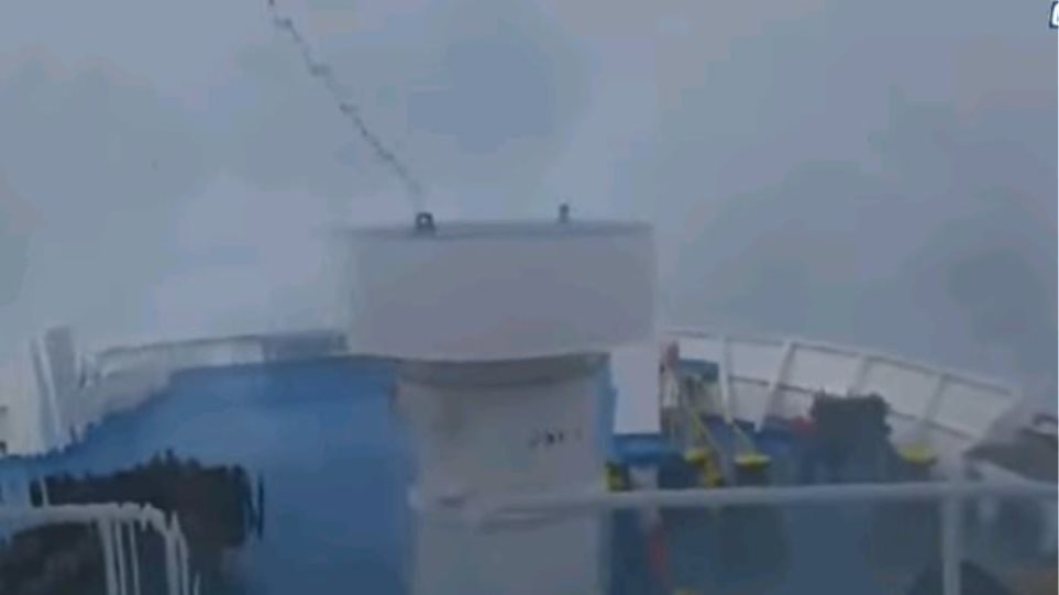 Πώς το πλοίο βουτά στα κύματα στο στενό Τήνου-Μυκόνου “Μάχη” με τα κύματα δίνουν καθημερινά ναυτικοί και επιβάτες, με πλοία που ταξιδεύουν στις θάλασσες...