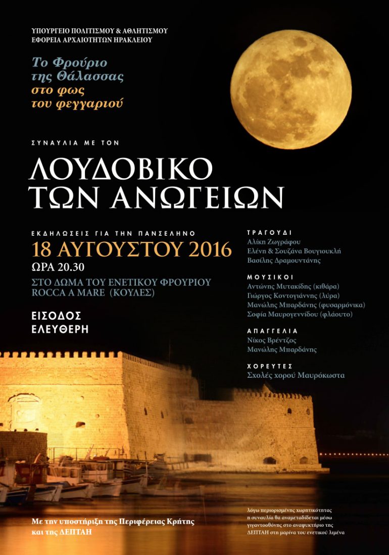 Η συναυλία θα πραγματοποιηθεί την Πέμπτη 18 Αυγούστου στις 20:30 το βράδυ-πανσέληνος- με ελεύθερη είσοδο Με την υποστήριξη της Περιφέρειας Κρήτης, της ΔΕΠΤΑΗ του...