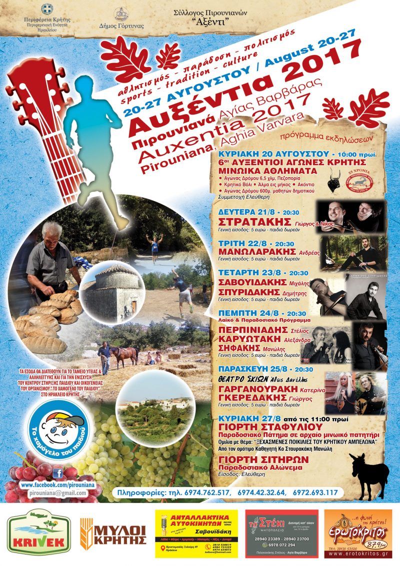 Με την συνδιοργάνωση της Περιφερειακής Ενότητας Ηρακλείου τα «Αυξέντια 2017» Με την συνδιοργάνωση της Περιφερειακής Ενότητας Ηρακλείου και του Δήμου Γόρτυνας ο Σύλλογος Πιρουνιανών...