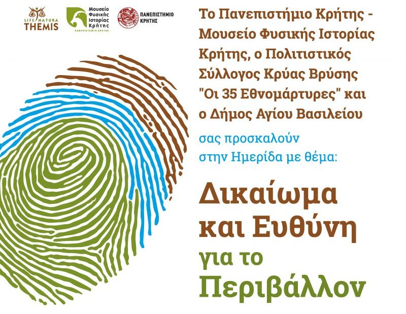 Ημερίδα «Δικαίωμα και Ευθύνη για το Περιβάλλον» – Κυριακή 16 Δεκεμβρίου 2018 – Κρύα Βρύση Δήμου Αγίου Βασιλείου, Παλαιό Δημοτικό Σχολείο Το Πανεπιστήμιο Κρήτης-Μουσείο...