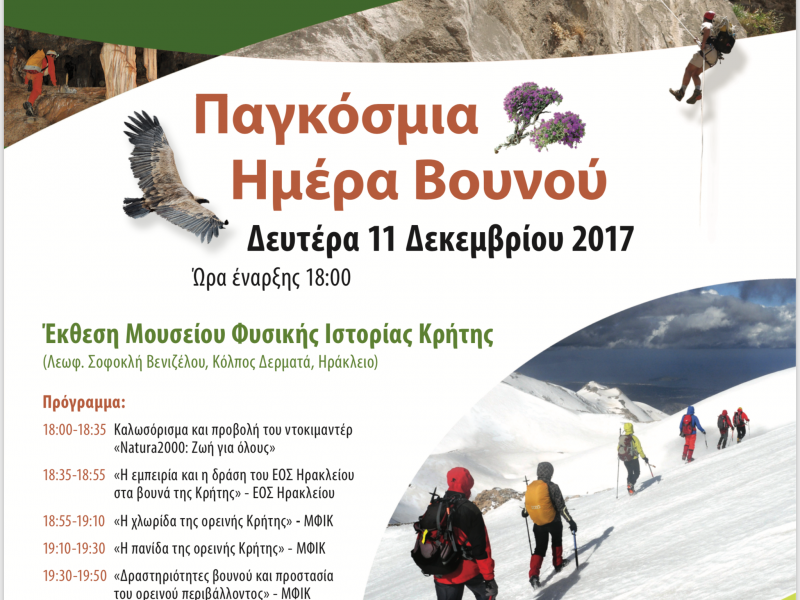 Ανοιχτή Εκδήλωση με θέμα τον εορτασμό της Παγκόσμιας Ημέρας Βουνού (11 Δεκεμβρίου 2017) Το Πανεπιστήμιο Κρήτης – Μουσείο Φυσικής Ιστορίας Κρήτης (ΜΦΙΚ) σε συνεργασία...