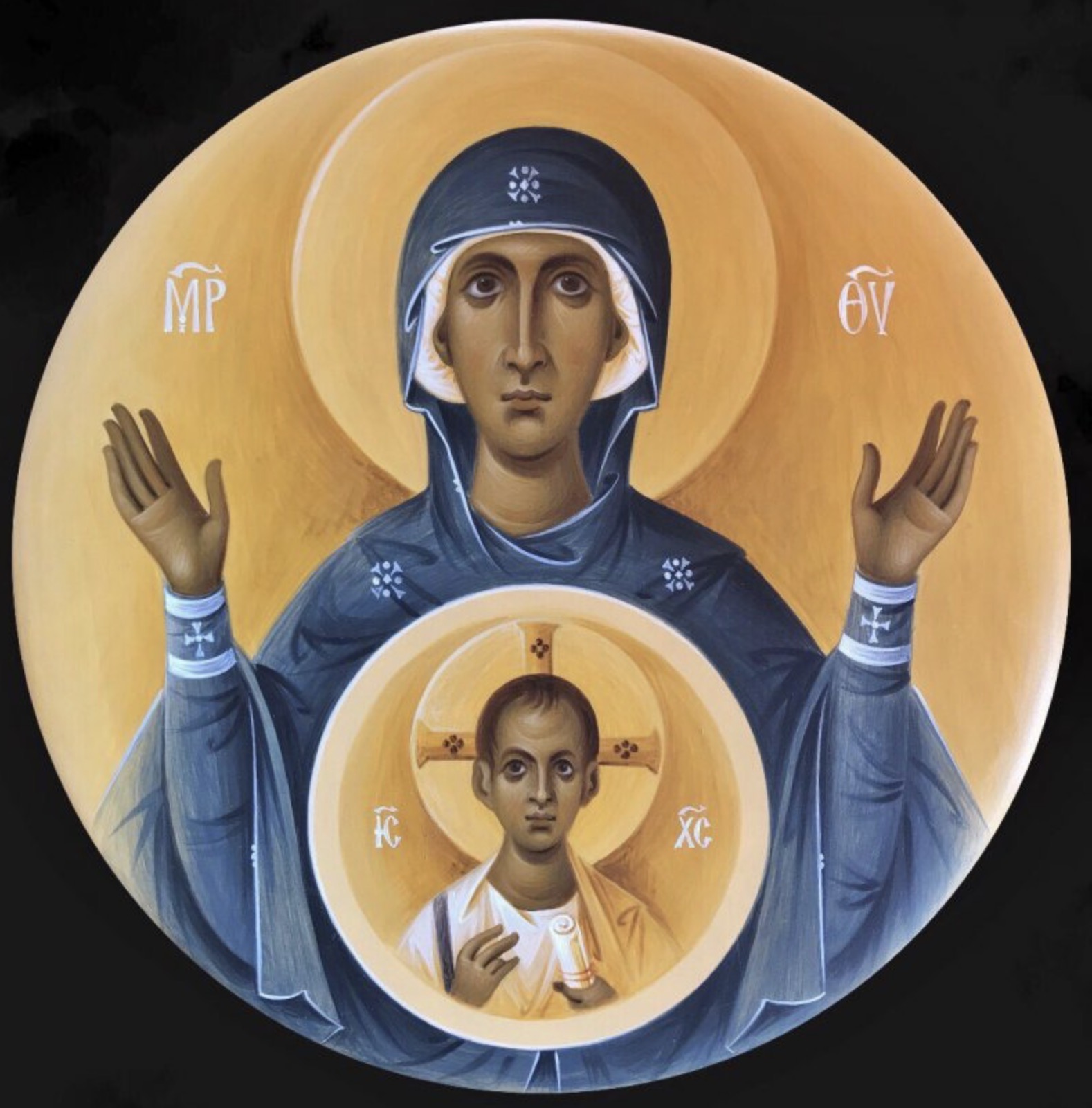 «Μαρία Αειπάρθενε, Κόσμου παντός Κυρία, Χαίρε Νύμφη Ανύμφευτε. Άχραντε Νύμφη πάναγνε, Δέσποινα Παναγία. Χαίρε Νύμφη Ανύμφευτε».