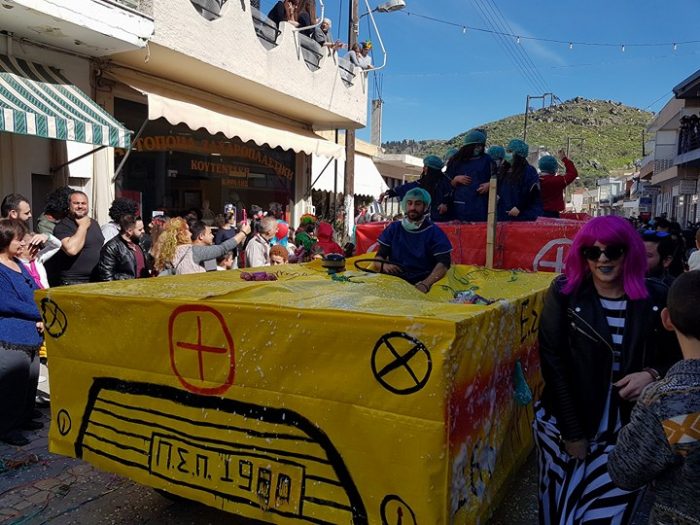 Μικροί και μεγάλοι χόρεψαν στους αποκριάτικος ρυθμούς με τα άρματα που συμμετείχαν σε αυτό, να κλέβουν την παράσταση, γενικά να γίνεται ΧΑΜΟΣ!