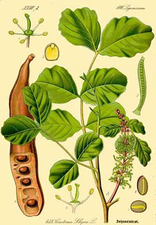 Δρα ως στυπτικό, καταπραϋντικό, μαλακτικό και καθαρτικό. Βοηθά σε προβλήματα μειωμένης λίμπιντο και δρα κατά της μείωσης του αριθμού των σπερματοζωαρίων. Βοηθά σε προβλήματα βρογχικού άσθματος. Ο πολτός του φρέσκου λοβού είναι ελαφρά ευκοίλιος, ενώ το αλεύρι από τους λοβούς θεραπεύει τη διάρροια, και ανακουφίζει σε ερεθισμούς της κοιλιάς. Σαν τσάι είναι καταπραϋντικό και μαλακτικό, επίσης στυπτικό. Αυτές οι δράσεις μοιάζουν αντιφατικές. Είναι όμως κλασικό χαρακτηριστικό της δράσης των φυτών όπου, τα μέρη τους επιδρούν διαφορετικά ανάλογα με το σημείο του φυτού και τον τρόπο παρασκευής τους. Οι σπόροι είναι στυπτικοί και καθαρτικοί. Ο φλοιός είναι έντονα στυπτικός. Χρήσιμα ακόμη θεωρούνται τα φύλλα και τα άνθη του φυτού, σε παθήσεις του φάρυγγα. Το αλεύρι χρησιμοποιείται από τη βιομηχανία καλλυντικών για τη σύσφιξη και την ανάπλαση του δέρματος.
