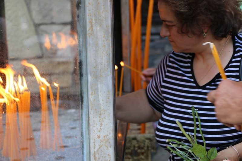 Μικρά παιδιά με τους γονείς τους, ηλικιωμένοι άνθρωποι, χωρίς να υπάρχει καθόλου συνωστισμός ένας ήταν ο σκοπός τους, να ανάψουν ένα κερί και να προσκυνήσουν την Χάρη της.