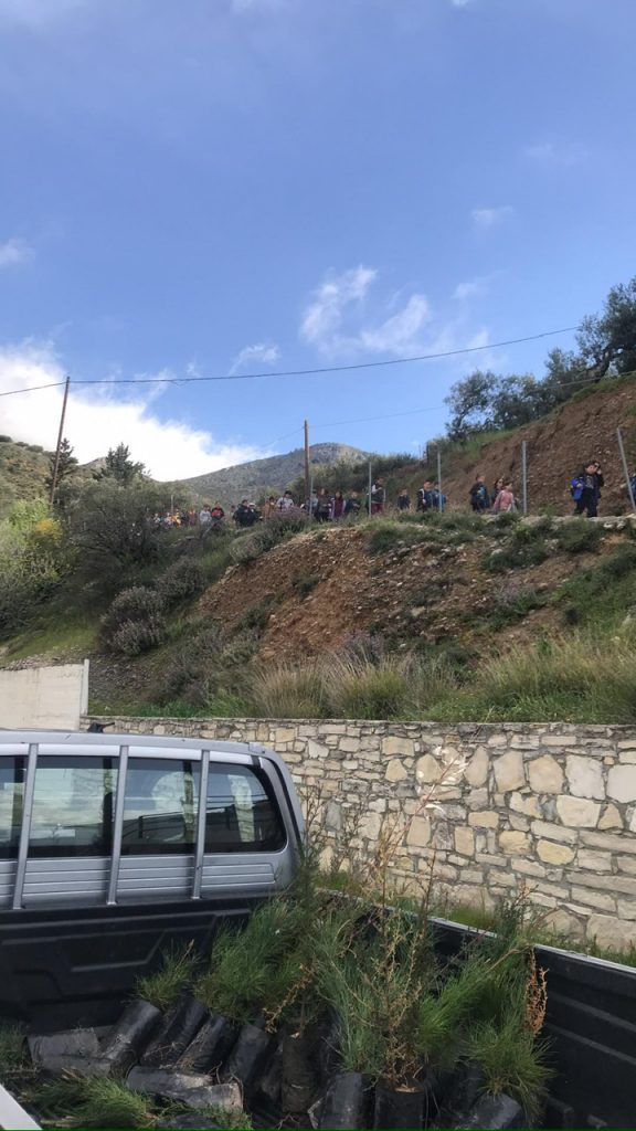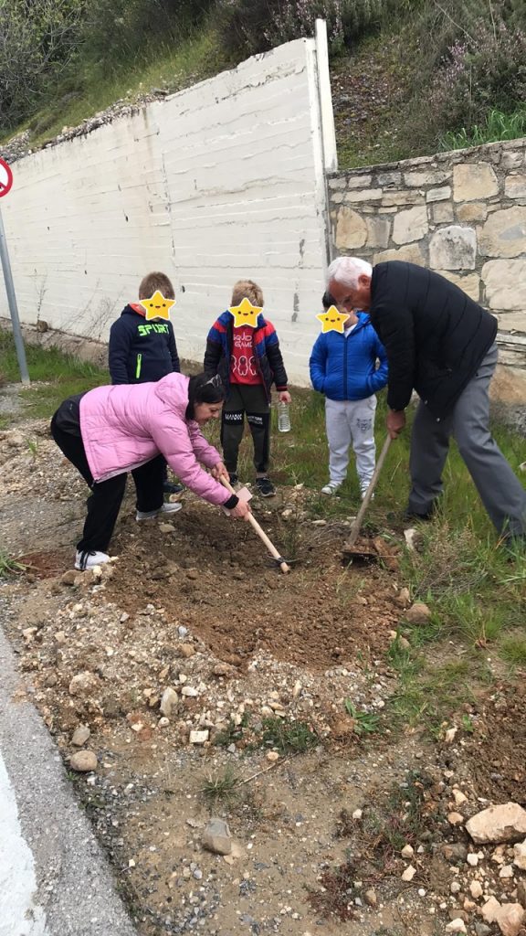 Στην δενδροφύτευση συμμετείχαν οι αντιδήμαρχοι Στέλιος Μαυρίδης, Στέλιος Σηφάκης, η διευθύντρια του Δημοτικού Σχολείου Μαρία Πρινιανάκη και εκπαιδευτικοί του σχολείου.