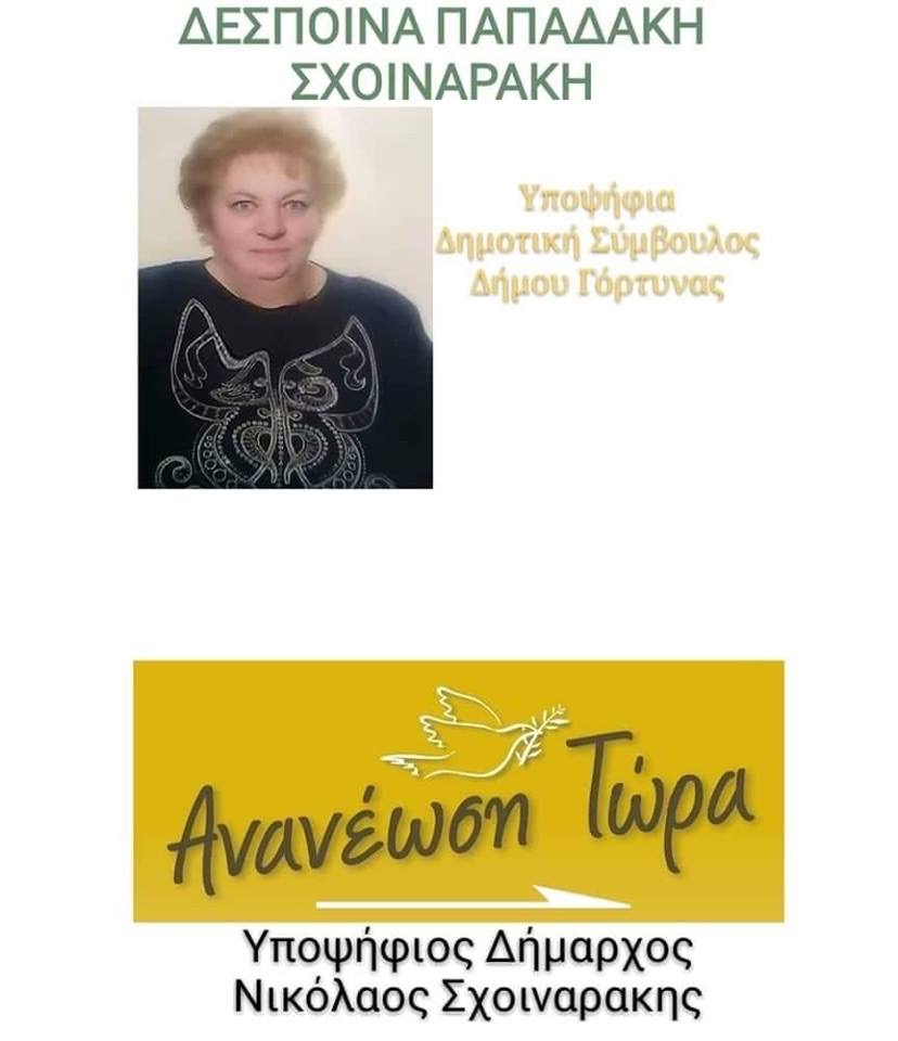 Αλλη μια δυνατή Υποψηφιότητα για το συνδυασμό “Ανανέωση Τώρα”, απο την Αγία Βαρβάρα αλλά και με μεγάλη δυναμική σε Κόφινα και Γόρτυνα