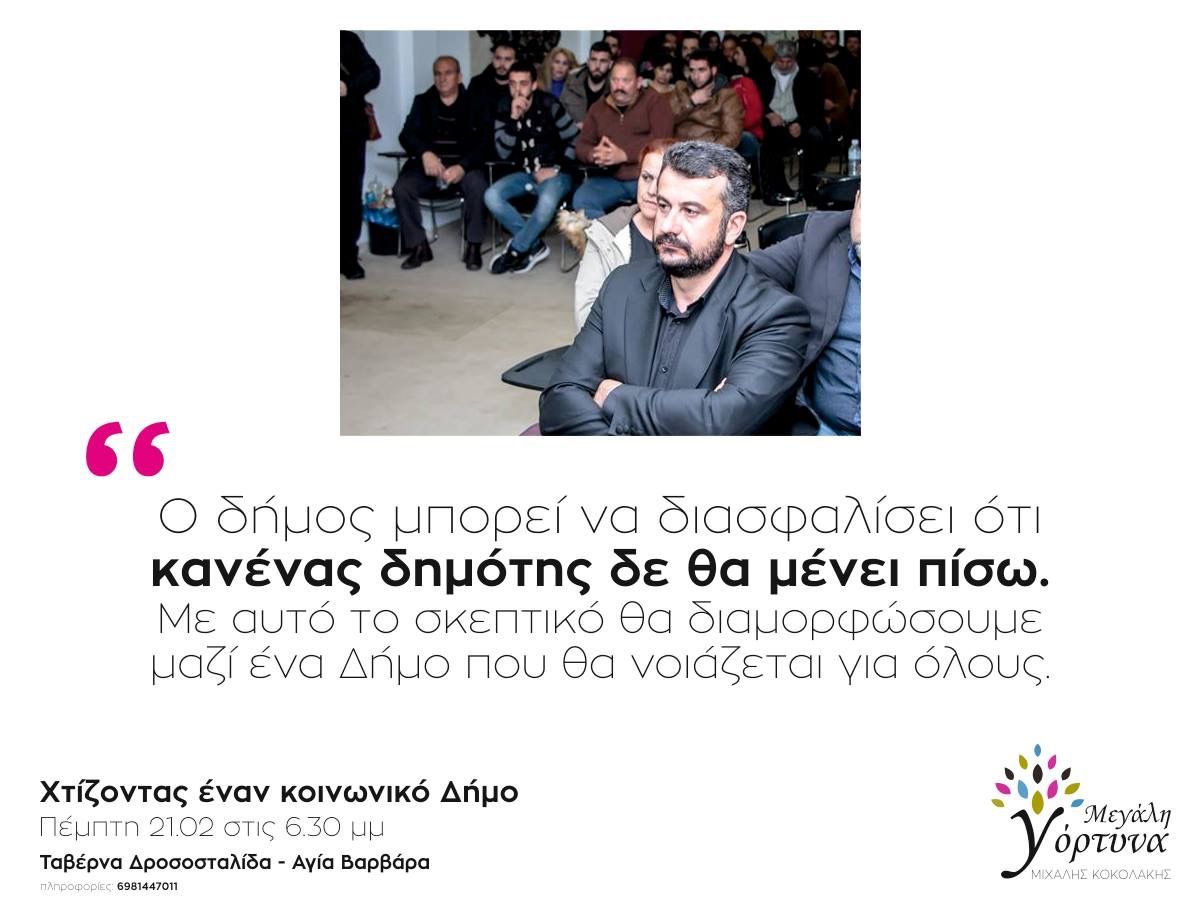 19.00 Χαιρετισμός υποψήφιου Δημάρχου Μιχάλη Κοκολάκη