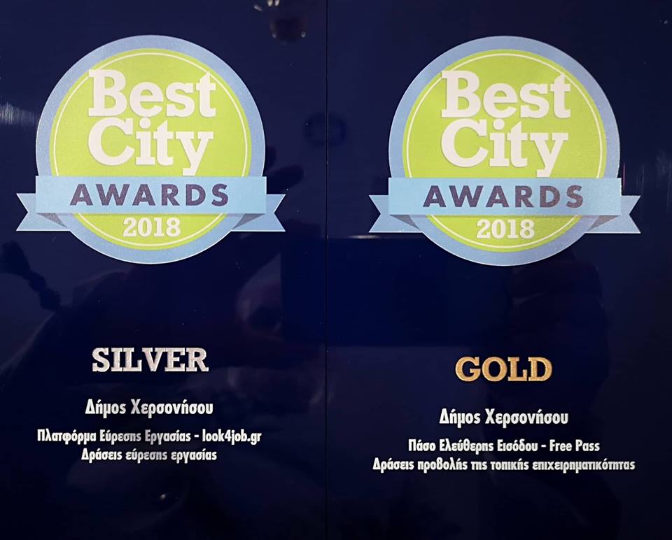 Ένα χρυσό και ένα ασημένιο βραβείο απέσπασε ο Δήμος Χερσονήσου στην τελετή απονομής των Best City Awards 2018