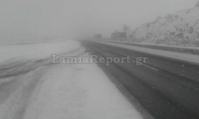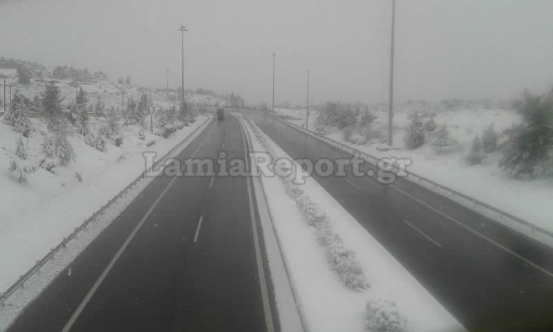 Σύμφωνα με το Lamiareport.gr, το πιο σοβαρό πρόβλημα παρουσιάστηκε στη γέφυρα της Ριτσώνας στις 14:00 το μεσημέρι, όπου εν μέσω σφοδρής χιονόπτωσης, δίπλωσε νταλίκα.