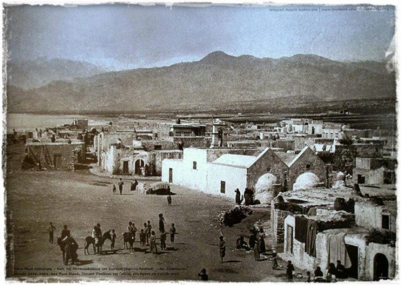 Ήταν μια μικρή γειτονιά όπου συμβίωναν οθωμανικές και γεραπετρίτικες οικογένειες. Διακρίνονται τα χιονισμένα Λασιθιώτικα βουνά, ο κάμπος με τις ελιές, τα πετρόκτιστα και λεπιδοσκεπασμένα σπιτάκια με τους πυθαρένιους ανηφοράδες και η δίκλυτη εκκλησία του Αφέντη Χριστού…
