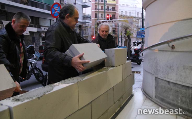 Οι εργαζόμενοι κατέφτασαν στο υπουργείο νωρίς το πρωί και άρχισαν να «κλείνουν» την είσοδο του υπουργείου, χτίζοντάς τη.