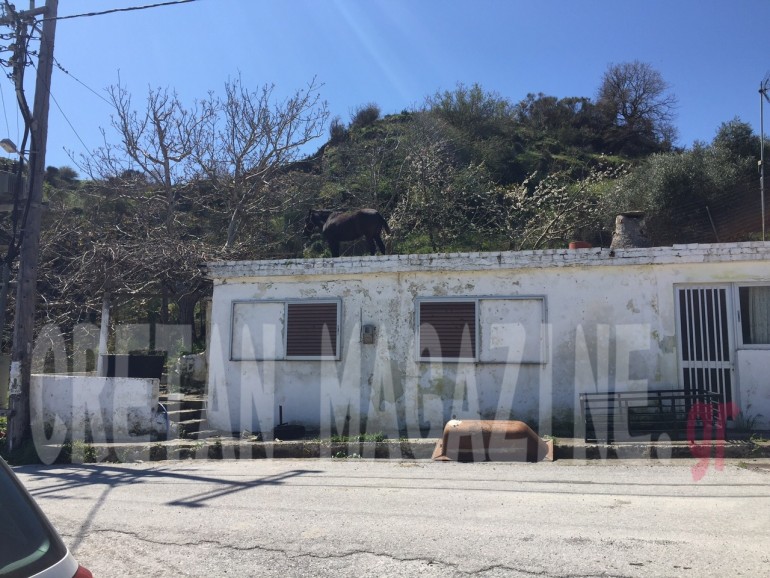 Ο φακός του CretanMagazine συνέλαβε το άλογο στην ταράτσα σπιτιού σε χωριό του Ρεθύμνου και μας κινεί την περιέργεια πως ανέβηκε εκεί πάνω.