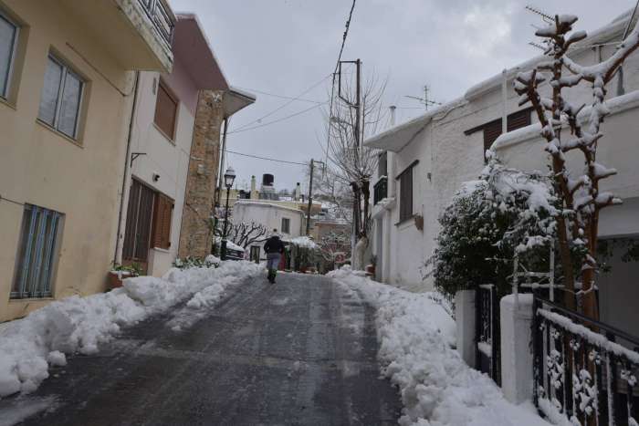 Συνιστάται ιδιαίτερη προσοχή στις μετακινήσεις των πεζών καθώς το χιόνι στα πεζοδρόμια είναι παγωμένο και υπάρχει κίνδυνος τραυματισμού. Οι δρόμοι παρέμειναν ανοιχτοί καθ’όλη τη διάρκεια της χιονόπτωσης, με τα μηχανήματα του δήμου να συνεχίζουν μέχρι και αυτή την ώρα, διανοίγοντας σοκάκια και στενά. Για τις μετακινήσεις προς Ηράκλειο και Ρέθυμνο δεν κρίνεται απαραίτητη η χρήση αντιολισθητικών αλυσίδων. Παράλληλα κανένα πρόβλημα δεν παρατηρήθηκε με την ηλεκτροδότηση και την υδροδότηση του χωριού.Με την ολοκλήρωση της εργασίας των μηχανημάτων θα ριχτούν μετά το μεσημέρι τόνοι αλατιού κατά μήκος του χωριού υπό τον φόβο του παγετού και της ολισθηρότητας και για την προστασία των κατοίκων. Κανένα θέμα δεν αναφέρθηκε ούτε από τους κτηνοτρόφους που έφτασαν κανονικά στα ποιμνιοστάσια τους.