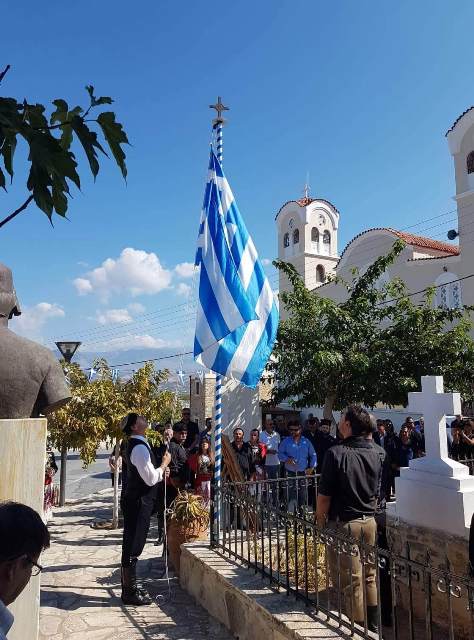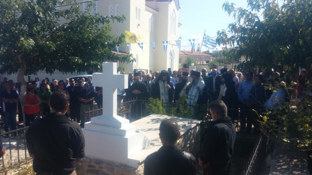 Στη συνέχεια, τελέσθηκε Τρισάγιο μπροστά στον τάφο του Καπετάν Μιχάλη Κόρακα, ακολούθησε έπαρση της Ελληνικής σημαίας και έγινε κατάθεση στεφάνων.
