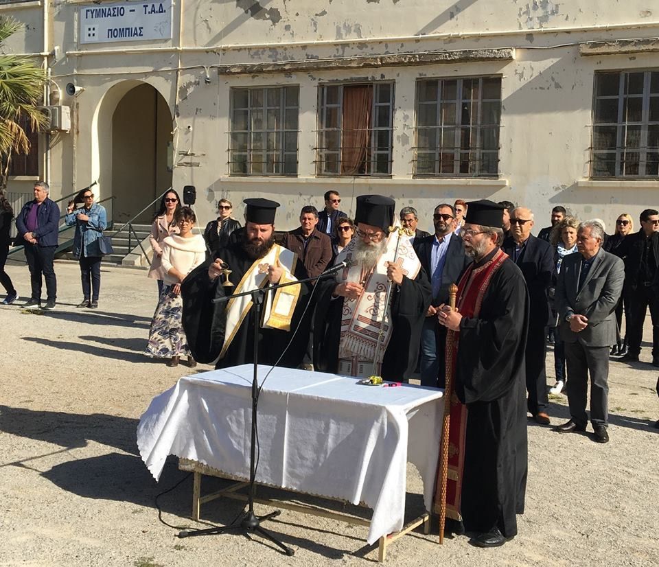 Τελέστηκε επιμνημόσυνη δέηση χωροστατούντος του Σεβασμιοτάτου Μητροπολίτη Γορτύνης και Αρκαδίας μπροστά στην προτομή του Στρ. Κατεχάκη στον αύλειο χώρο του Σχολείου.